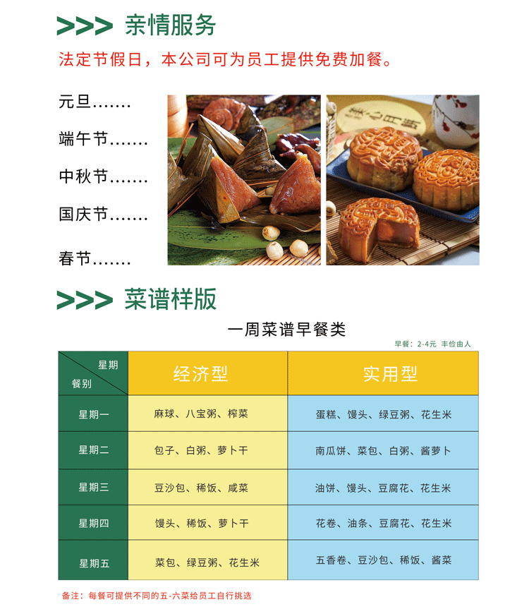 主營業(yè)務:企業(yè)食堂承包運營管理,現(xiàn)場配餐,打包快餐,蔬菜凈菜配送,副食品批發(fā)等